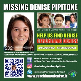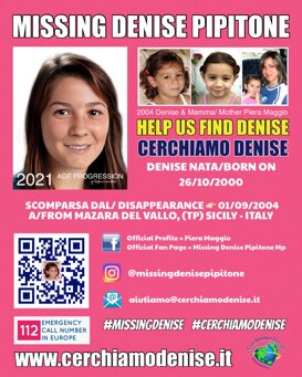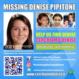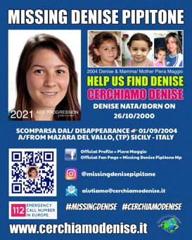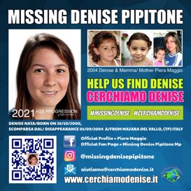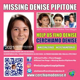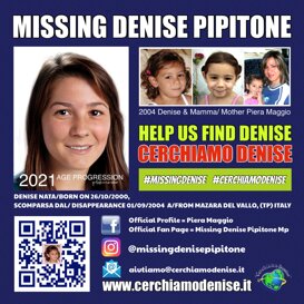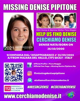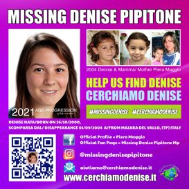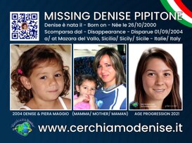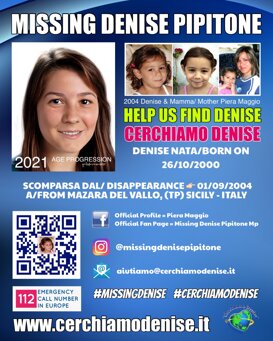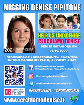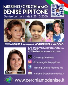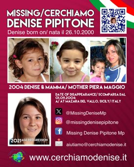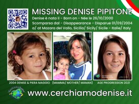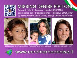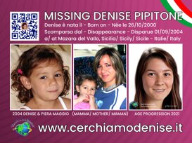 Please, help us find Denise  Denise Pipitone was born on 26/10/2000, in Mazara del Vallo (TP) Sicily / Italy. Denise was abducted at Mazara del Vallo in the province of Trapani on 1st September 2004 when she was 4 years old. If you have any information about her whereabouts please contact your nearest police station immediately. Thank You